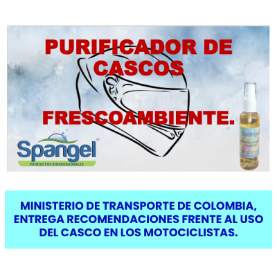 Spangel Productos Biodegradables desarrollo la sustancia Purificador de Cascos Fresco ambiente, para la limpieza y desinfección, que debe usarse acompañado de paños desechables, especialmente para el